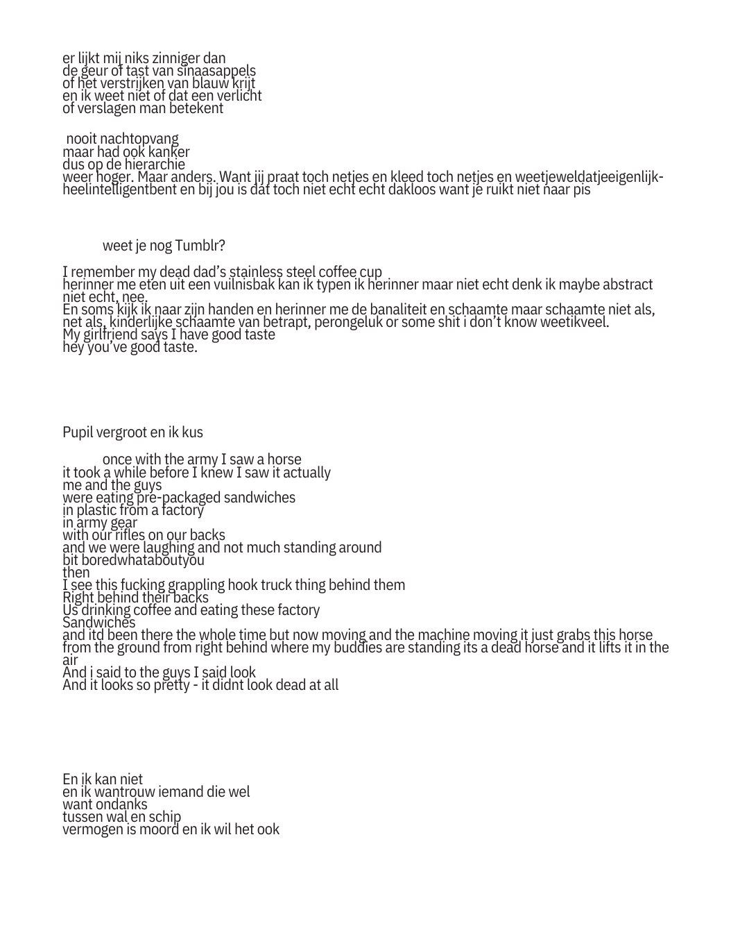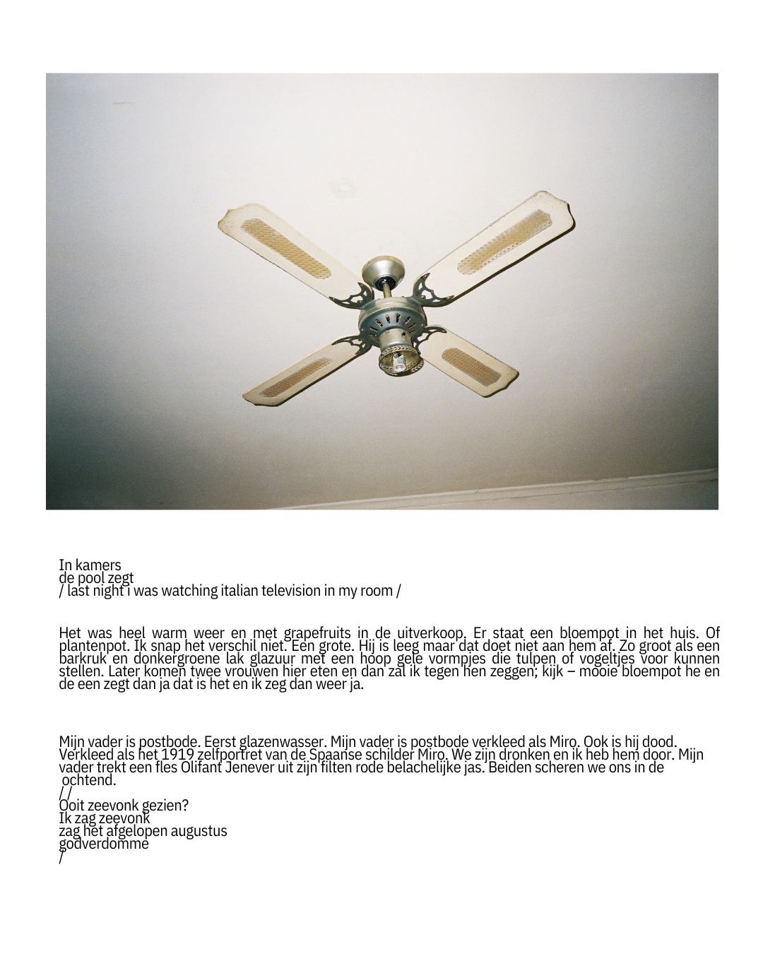 Stef Hulskamp maakt fotoseries, soms met tekst soms zonder foto’s. In 2024 was hij deelnemer aan het Slow Writing Lab, een talentontwikkelingsprogramma van het Nederlands Letterenfonds.